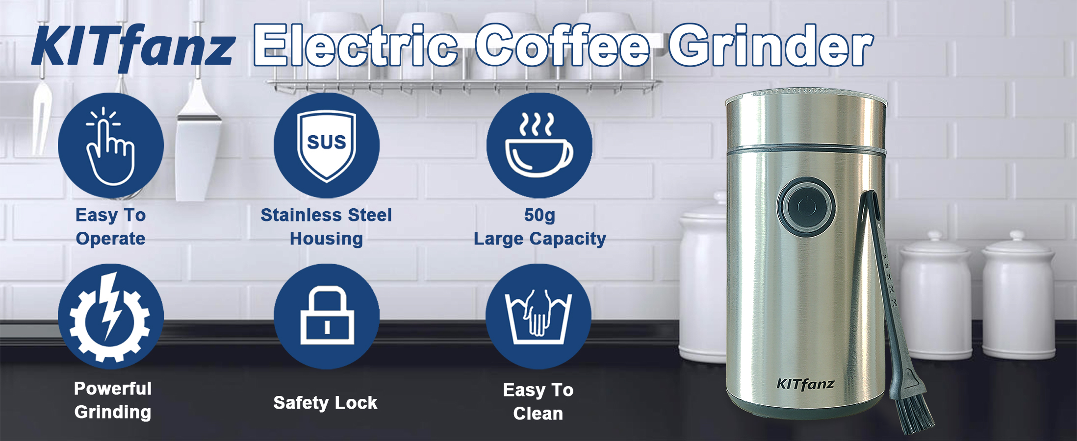 Quickly grind fresh coffee beans with a powerful motor and durable stainless steel blades. Compact, simple to use, and perfect for everyday coffee lovers.