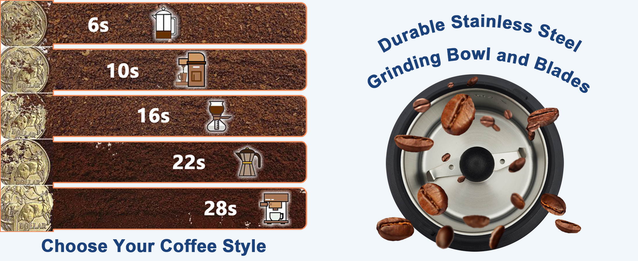 Stainless Steel Electric Blade Coffee Grinder – Fast & Easy Brewing
